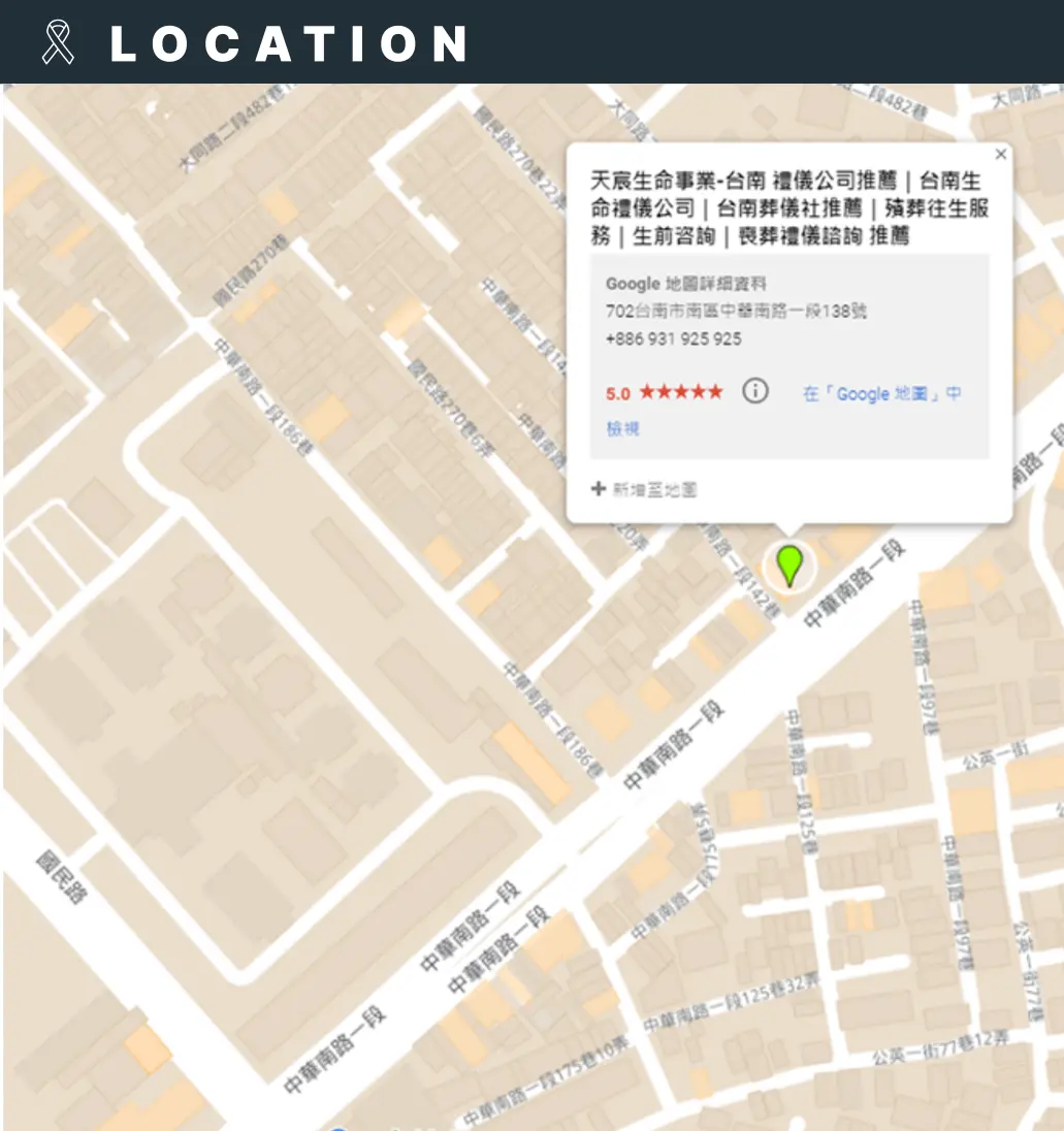禮儀公司位於殯葬管理所附近,為您提供方便和溫暖的服務。據點設於安靜的環境中,為您提供一個平靜、安詳的空間,讓您和家人可以在悼念親人的同時得到安慰。我們的服務團隊由專業的葬儀策劃師和體貼的哀悼服務人員組成,他們將全心全意地為您提供支持和協助,以確保您的需求得到滿足,並在您最需要的時候給予您溫暖和安慰。